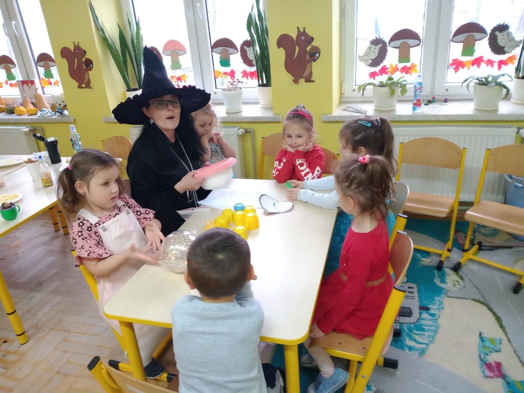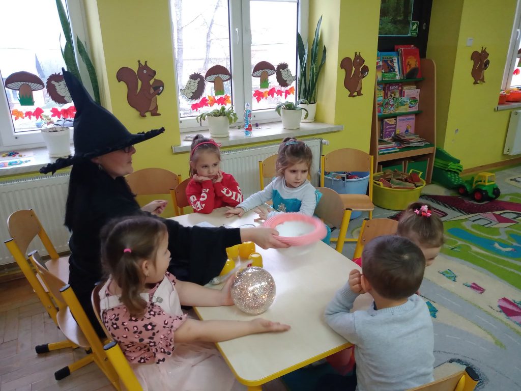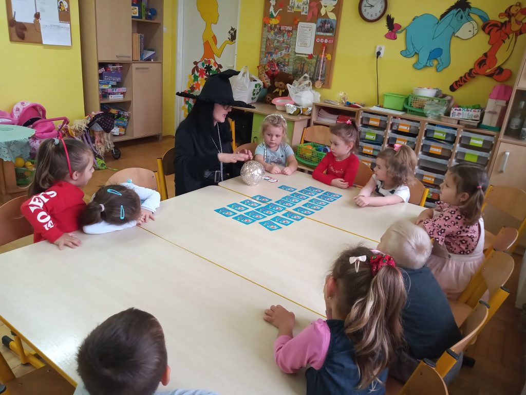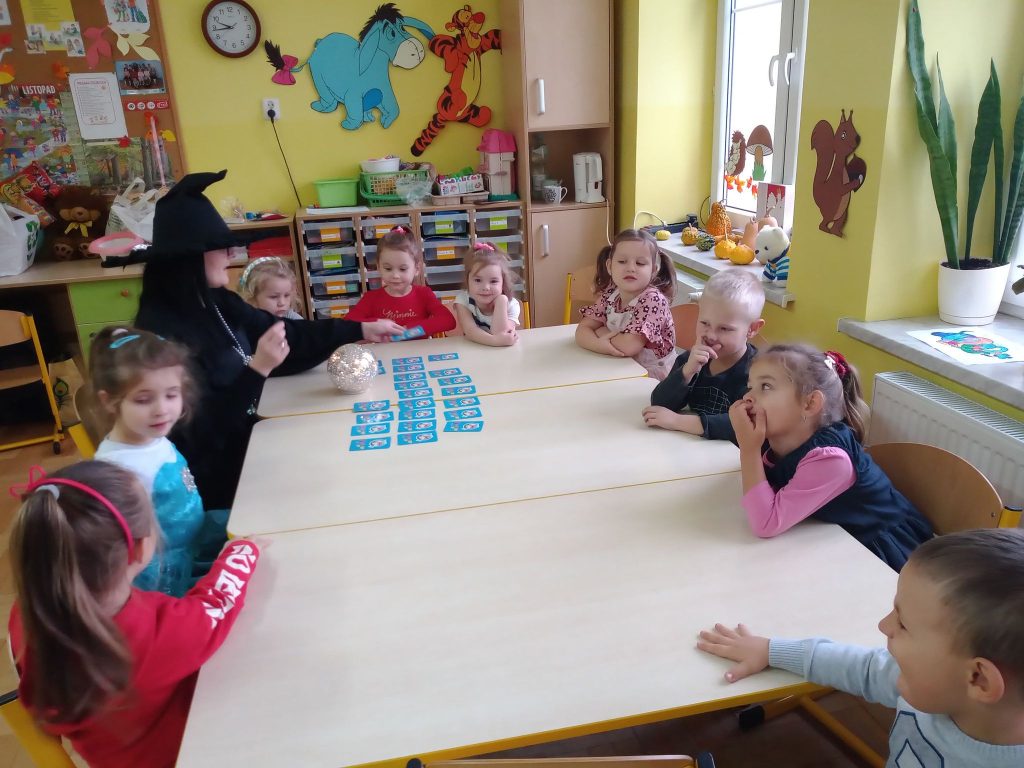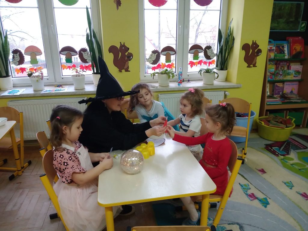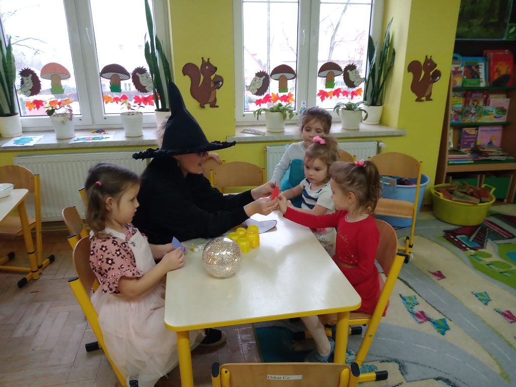 W dniu 25 listopada w naszej grupie zapanowała magiczna atmosfera, ponieważ świętowane były Andrzejki. Andrzejki to wieczór wróżb odprawianych w wigilię św. Andrzeja, czyli noc z 29 na 30 listopada. Według dawnych wierzeń ta noc miała magiczną moc, uchylającą wrota do nieznanej przyszłości. Ten dzień był dniem radosnych zabaw, tańców i wróżb, gdzie dzieci mogły poznać swoją przyszłość. Wśród wróżb były „Kubeczki Przyszłości”, „Serca ”, „Kolory”, „Buty ”, „Magiczne kostki”, a największe zainteresowanie wywołało wróżenie z kart „Czarownicy” przy magicznej kuli. Spotkanie zakończyło się wspólnymi zabawami w kole. Przedszkolaki wróciły do domu w doskonałych nastrojach.