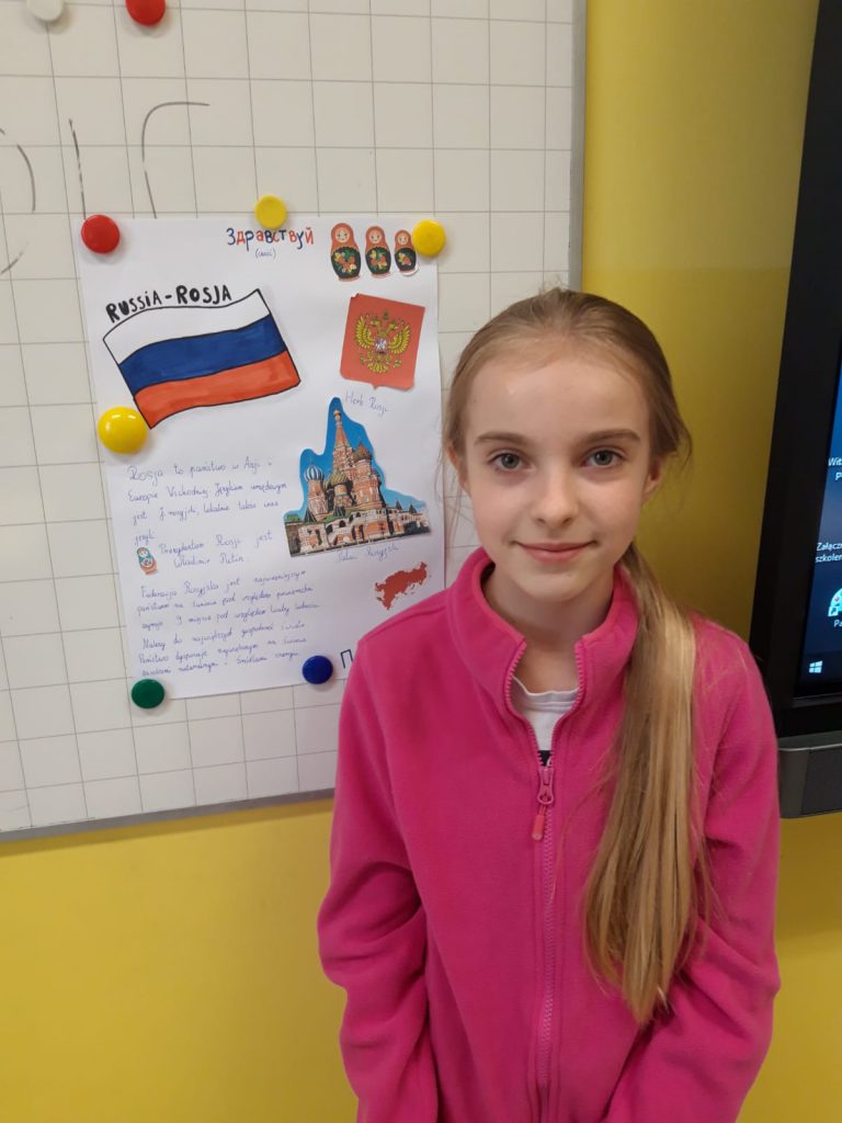 W dniu 28.09.2020r. w naszej szkole i oddziale przedszkolnym świętowaliśmy Dzień Języków Obcych, który miał na celu zapoznanie dzieci z kulturą i zwyczajami innych krajów. Rozpoczęliśmy od prezentacji multimedialnej opowiadającej o zabytkach, atrakcjach turystycznych, świętach i zwyczajach Wielkiej Brytanii. Kolejnym punktem naszych obchodów było wspólne zaśpiewanie piosenki „Panie Janie” w języku angielskim („Brother John”). Następnie dzięki uczniom klasy trzeciej wybraliśmy się we wspaniałą „podróż”, w czasie której odwiedziliśmy: Chiny, Japonię, Rosję, Niemcy, Chorwację, Włochy, Ukrainę oraz Francję. Dowiedzieliśmy się m.in., że w Japonii jest zawód nazywany „upychaczem”, w Chinach pechową liczbą jest 4, bożonarodzeniowy zwyczaj ubierania choinki pochodzi z Niemiec, a kochliwi Włosi wymyślili dobrze nam znane Walentynki. Zwieńczeniem Dnia Języków Obcych był francuski taniec „Le pas du loup” w wykonaniu trzecioklasistów.