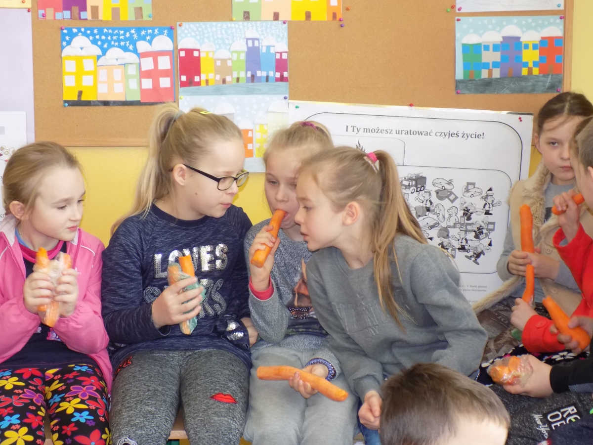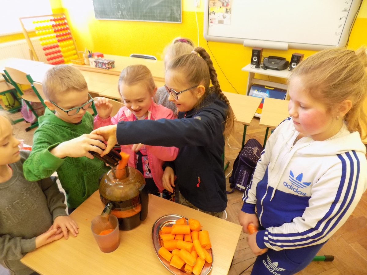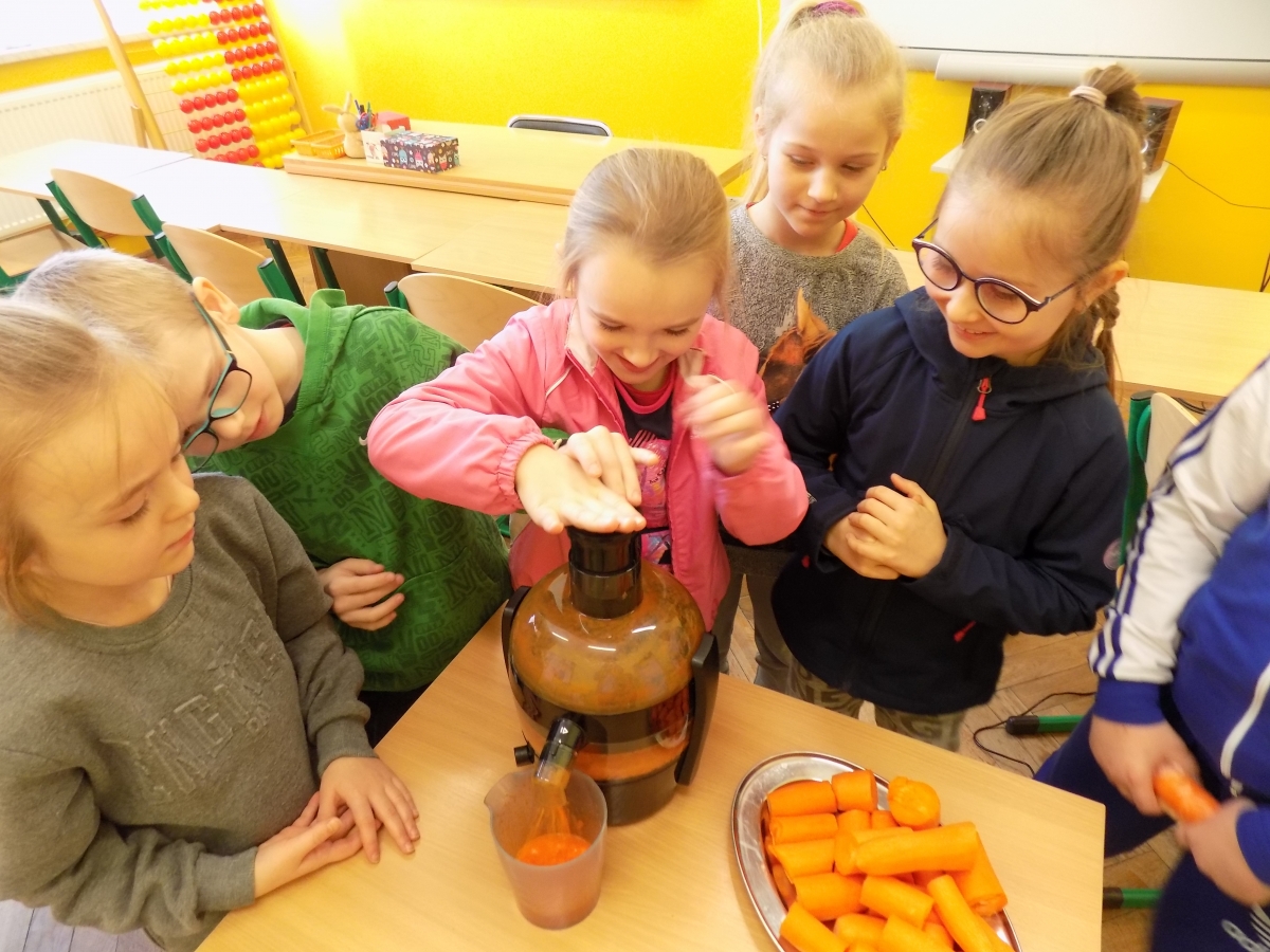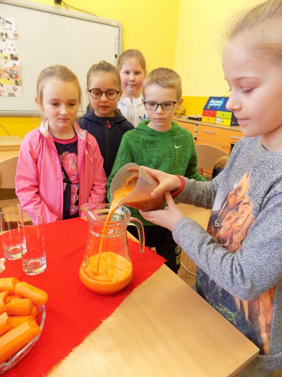 O zaletach spożywania marchewki pod różnymi postaciami, a także picia soku marchewkowego dowiedzieli się uczniowie szkoły i dzieci z oddziału przedszkolnego w piątek 2 marca.