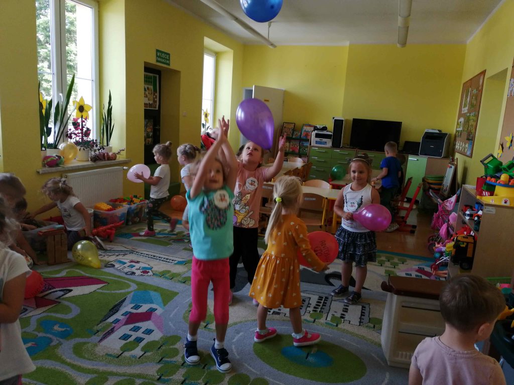 Dnia 20.09.2023r. w naszym oddziale przedszkolnym obchodziliśmy Dzień Przedszkolaka. To święto naszych najmłodszych uczniów, które było bogate w różnego rodzaju gry i zabawy z chustą animacyjną. Dzieci musiały wykazać się wiedzą dotyczącą zachowania dzielnego przedszkolaka. W tym dniu nasza grupa „Biedronki” została obdarowana kolorowymi balonami, odznakami dzielnego i wesołego przedszkolaka, a także słodkim poczęstunkiem. W tym dniu wszystkim przedszkolakom życzyliśmy dużo radości, spełnienia marzeń i wspaniałych chwil spędzonych w przedszkolu.