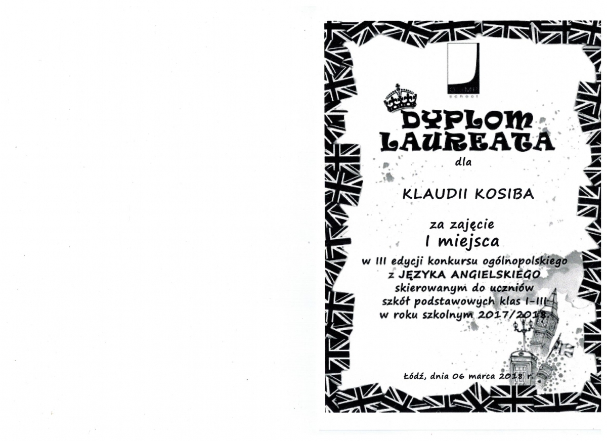 Niezmiernie miło nam poinformować, że I miejsce w ogólnopolskim rozstrzygnięciu otrzymała uczennica klasy III Klaudia Kosiba.