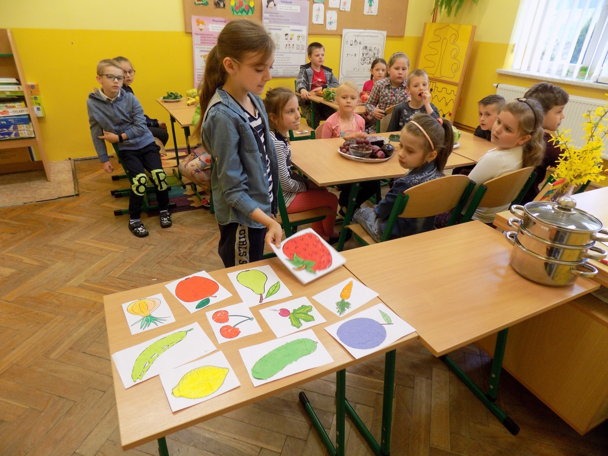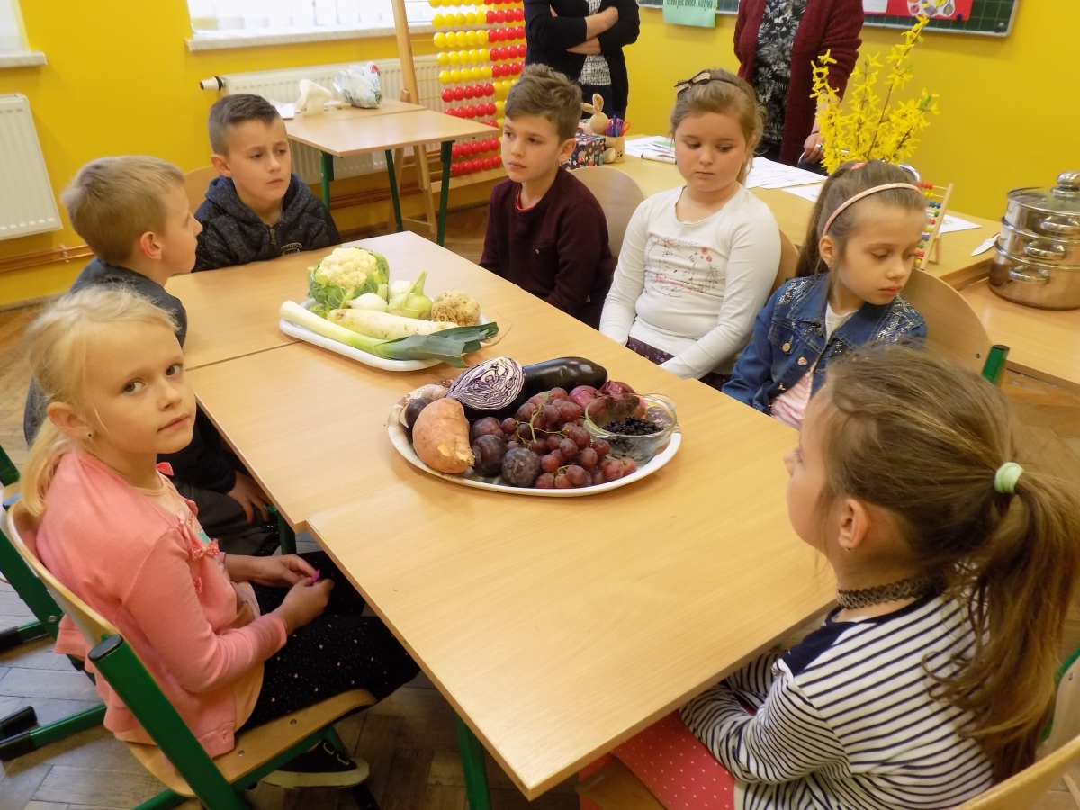 Wszystkie dzieci entuzjastycznie zareagowały na akcję i przyniosły warzywa oraz owoce. Klasa I jedynie w kolorach fioletowym i białym, klasa II była odpowiedzialna za kolor zielony i żółty, trzecia zaś pomarańczowy i czerwony. Nie brakowało nowalijek, pachnących pomidorów czy papryk oraz rzepy czy kalarepy.