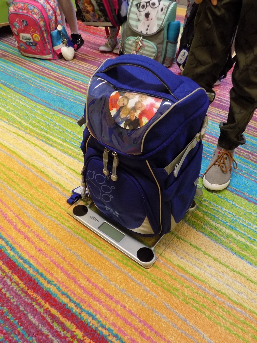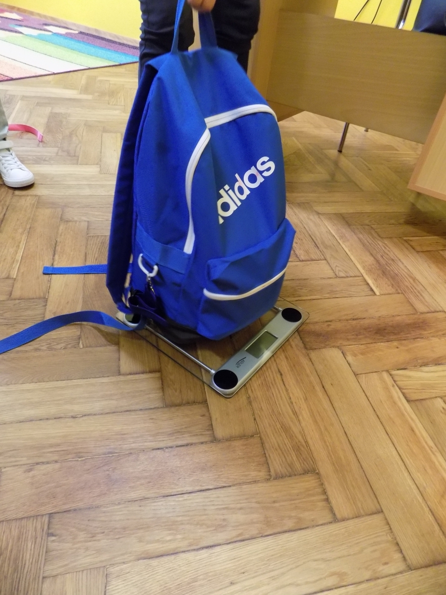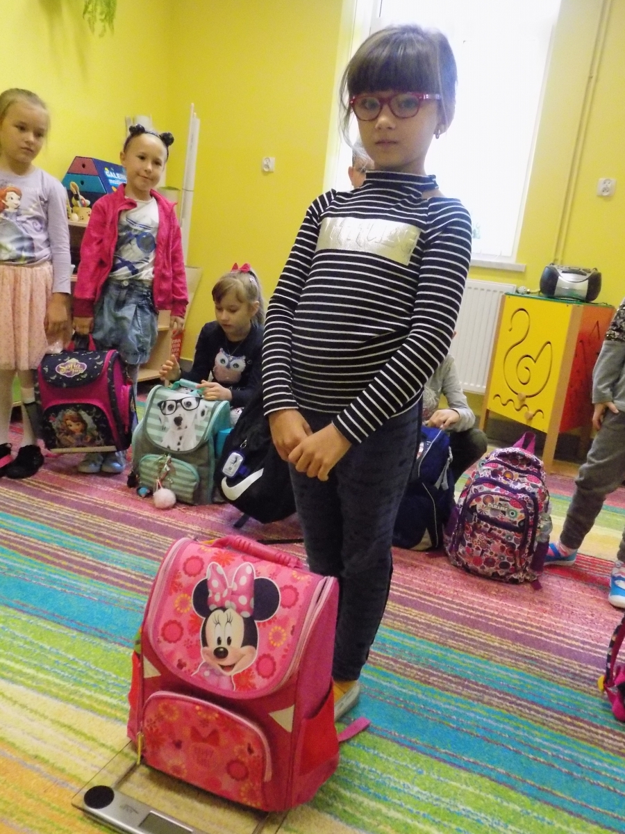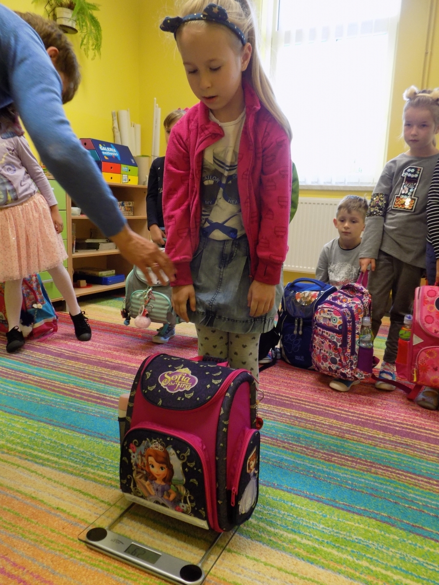 Działania nacelowane na dbałość o zdrowy styl życia i dietę w tym roku uzupełniamy również badaniem ciężaru plecaków szkolnych.