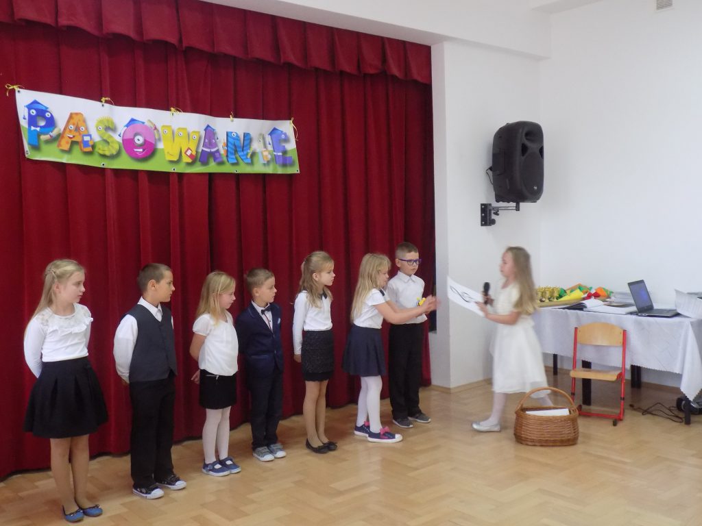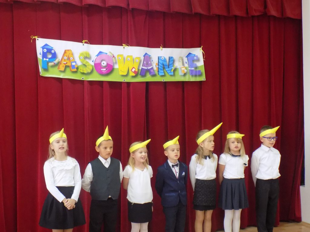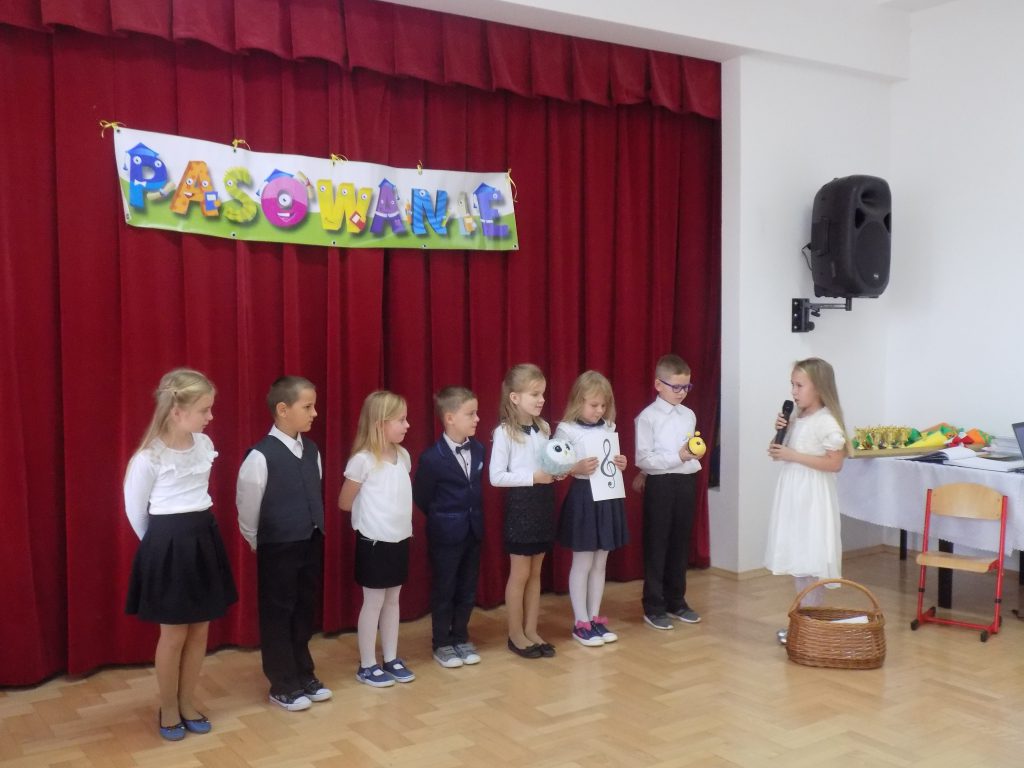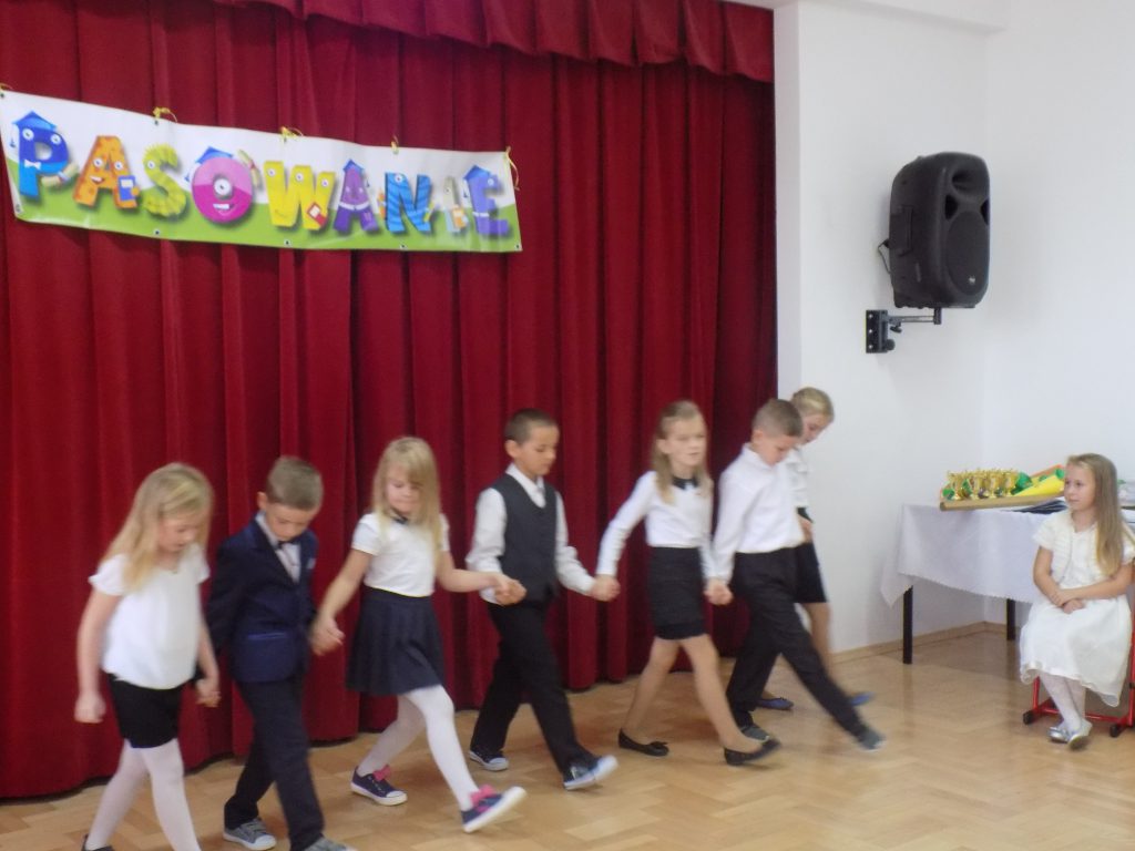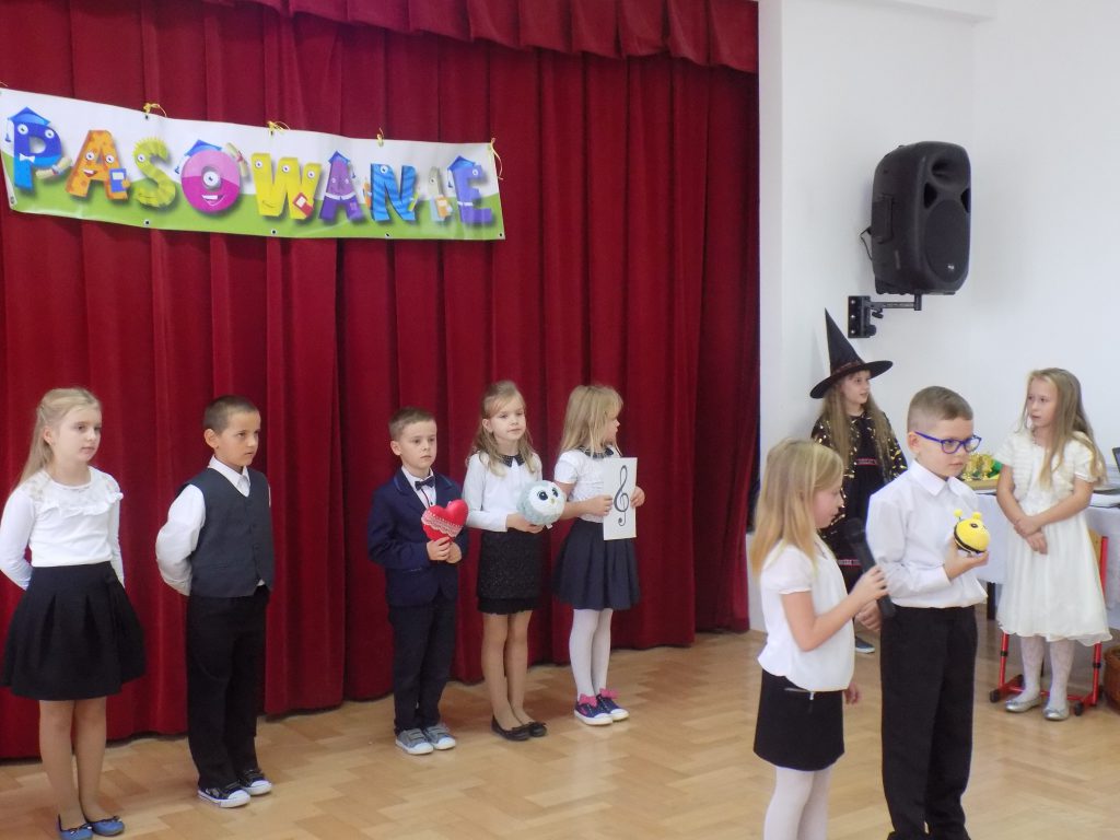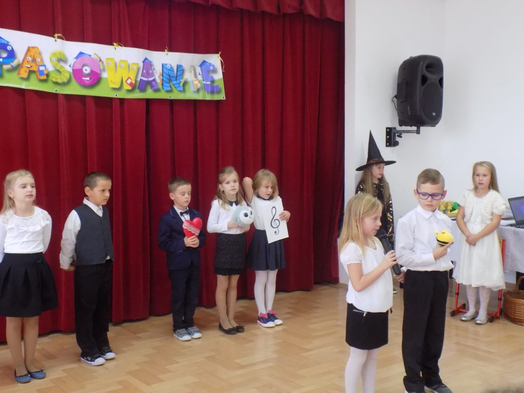 Pasowanie na ucznia to z całą pewnością jeden z najważniejszych momentów rozpoczęcia edukacji w pierwszej klasie szkoły podstawowej. Nasi uczniowie wzorowo stawili się na swojej uroczystości… ale tutaj właśnie czekała na nich niespodzianka. Musieli udowodnić, że dwa miesiące nauki wystarczyły, aby prawidłowo rozwiązać zadania matematyczne, zagadki przyrodnicze czy dotyczące mowy ojczystej. W podróż po krainie muzyki oraz do miasteczka ruchu drogowego zabrała ich dobra wróżka, która zna wartość wiedzy, a za każdą dobrą odpowiedź nagradzała upominkami.