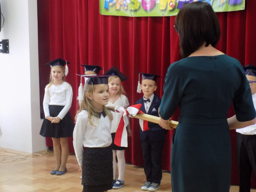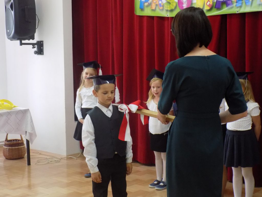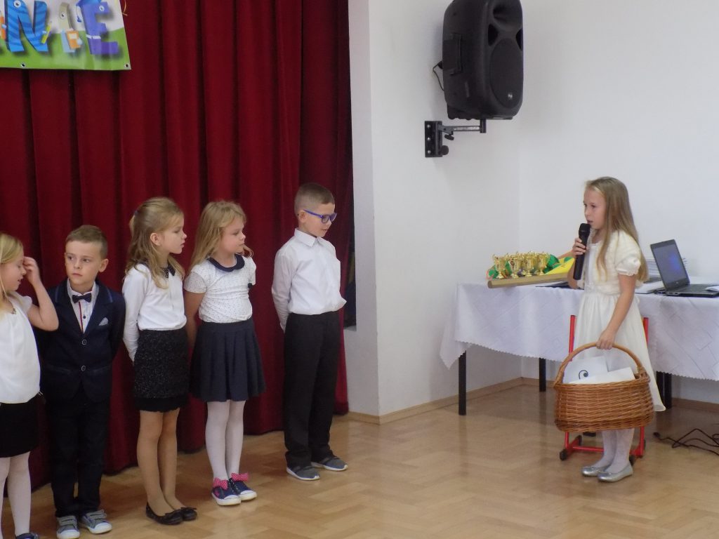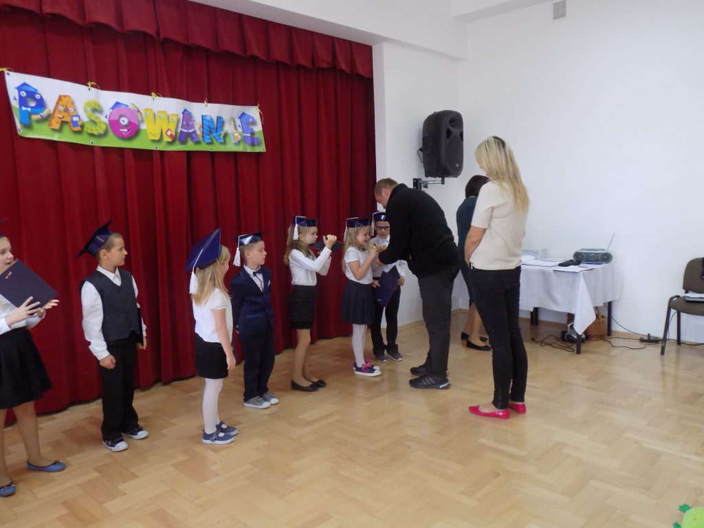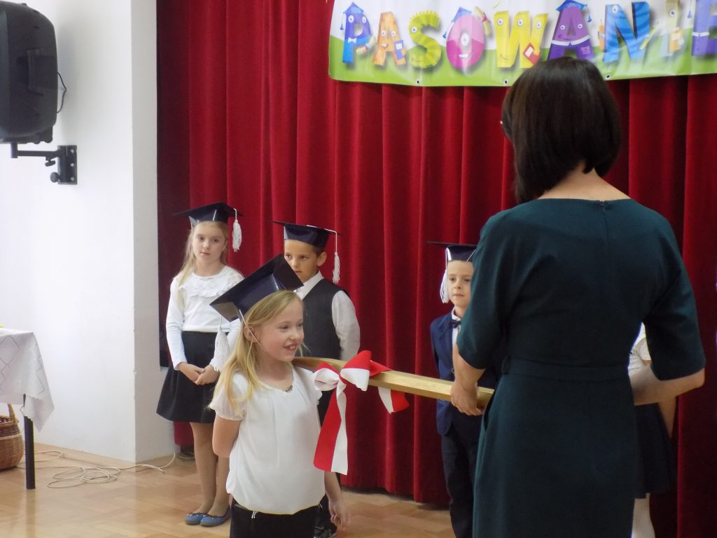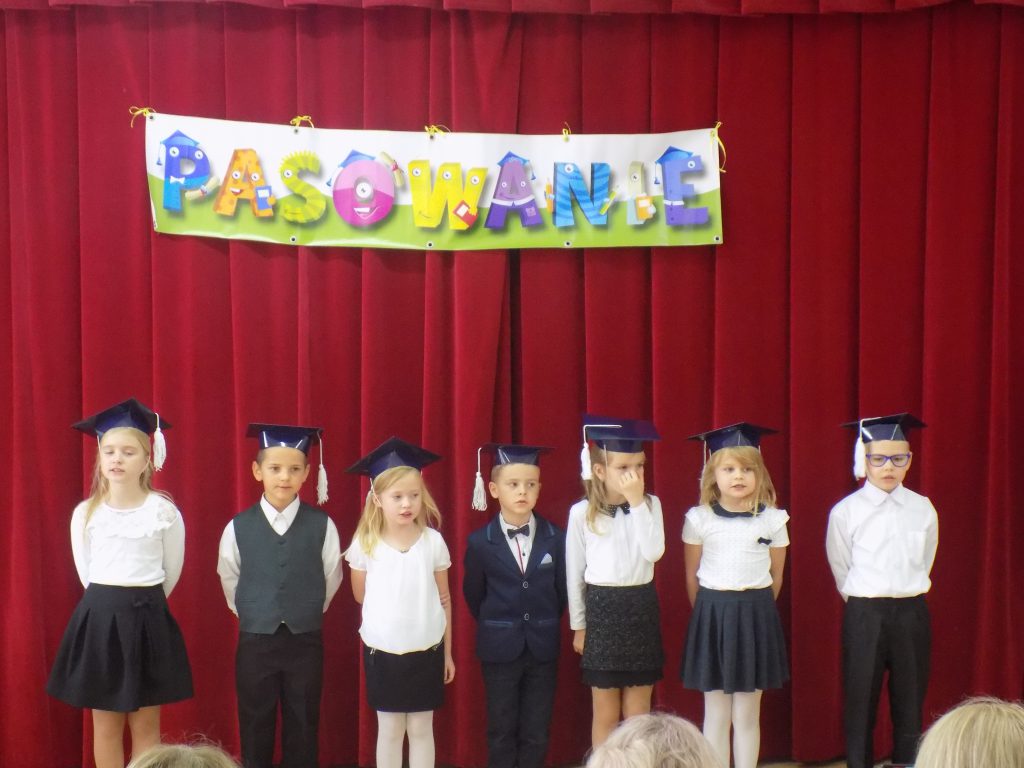 Pasowanie na ucznia to z całą pewnością jeden z najważniejszych momentów rozpoczęcia edukacji w pierwszej klasie szkoły podstawowej. Nasi uczniowie wzorowo stawili się na swojej uroczystości… ale tutaj właśnie czekała na nich niespodzianka. Musieli udowodnić, że dwa miesiące nauki wystarczyły, aby prawidłowo rozwiązać zadania matematyczne, zagadki przyrodnicze czy dotyczące mowy ojczystej. W podróż po krainie muzyki oraz do miasteczka ruchu drogowego zabrała ich dobra wróżka, która zna wartość wiedzy, a za każdą dobrą odpowiedź nagradzała upominkami.