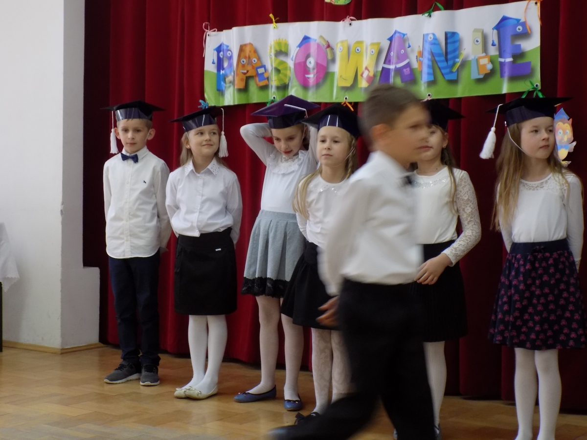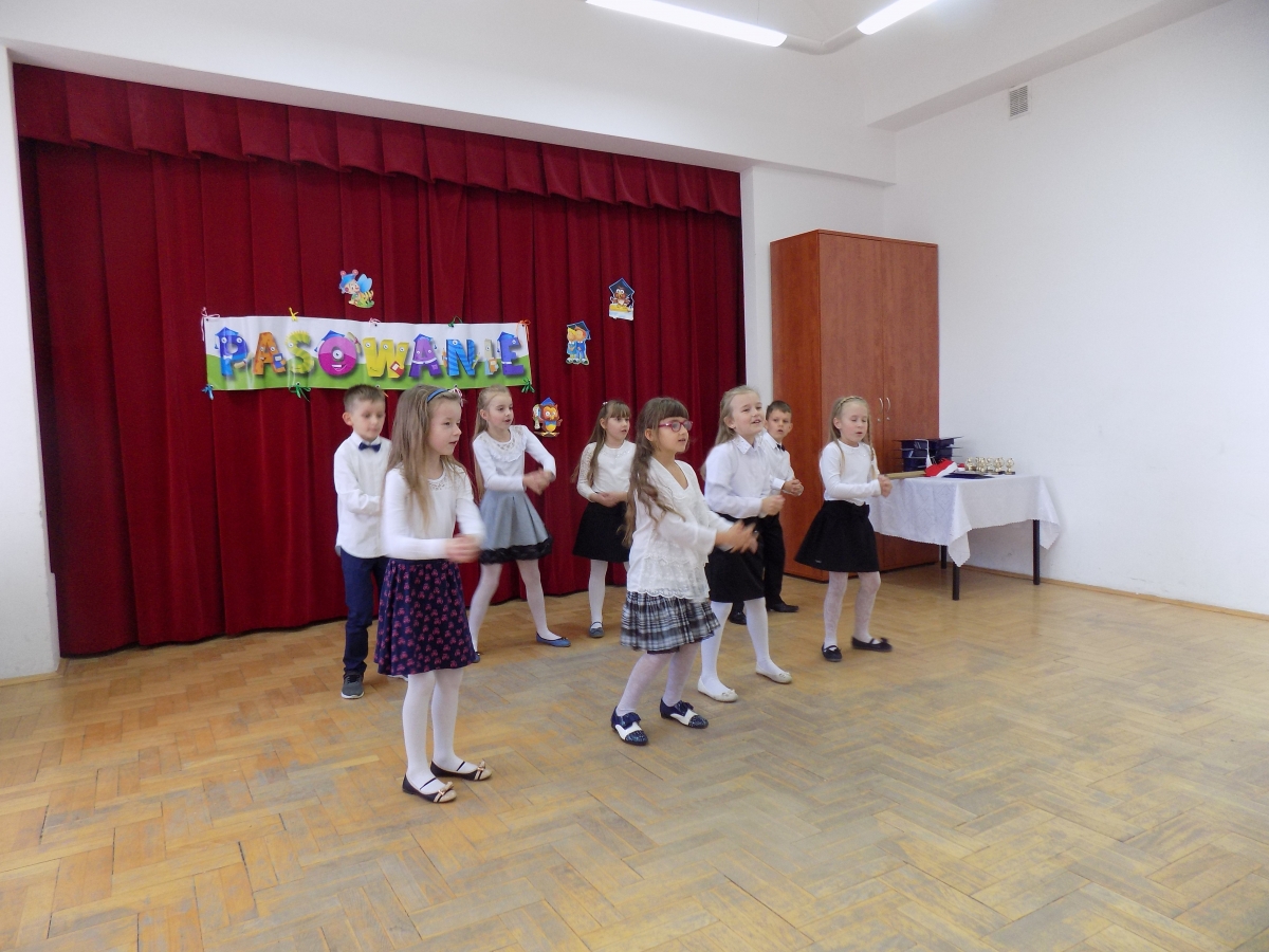 Po zaprezentowaniu programu artystycznego uczniowie klasy I wypowiedzieli słowa uczniowskiej przysięgi. Następnie Pani Dyrektor Ewa Lenard symbolicznym ołówkiem dokonała pasowania uczniów oraz wręczyła pamiątkowe dyplomy.