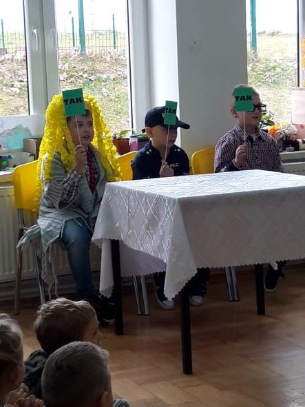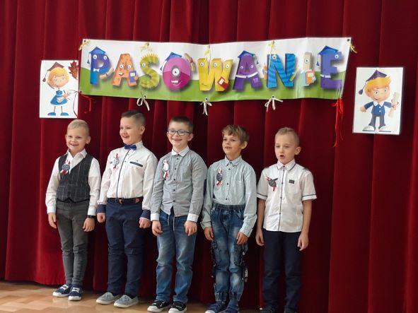 W dniu 4 listopada w poczet pełnoprawnych uczniów naszej szkoły została przyjęta „męska  piątka” z klasy I. Uroczyste pasowanie uświetniły swoją obecnością takie osobistości jak: Pani Magda Gessler, sam Pan Premier Mateusz Morawiecki oraz Komendant Główny Policji, którzy zasiedli w komisji konkursowej programu telewizyjnego nadawanego na żywo pod tytułem „Jak oni ślubują”, prowadzonego przez Katarzynę Cichopek oraz Krzysztofa Ibisza . Ocenie jury poddawani byli oczywiście pierwszoklasiści. Musieli oni sprostać nie lada wyzwaniom z przeróżnych dziedzin wiedzy stawianym przez członków jury. Na szczęście chłopcy spisali się na medal! Mogli więc złożyć uroczyste ślubowanie i zgodnie z tradycją za pomocą przeogromnego ołówka być poddanym obrzędowi pasowania, którego dokonała pani dyrektor. Kiedy największe emocje już opadły i nasi bohaterowie z apetytem pałaszowali słodkości przygotowane przez mamy, w osobach ze świata telewizji wszyscy mogli rozpoznać twarze koleżanek i kolegów z klasy II, którzy po mistrzowsku odegrali swoje role.