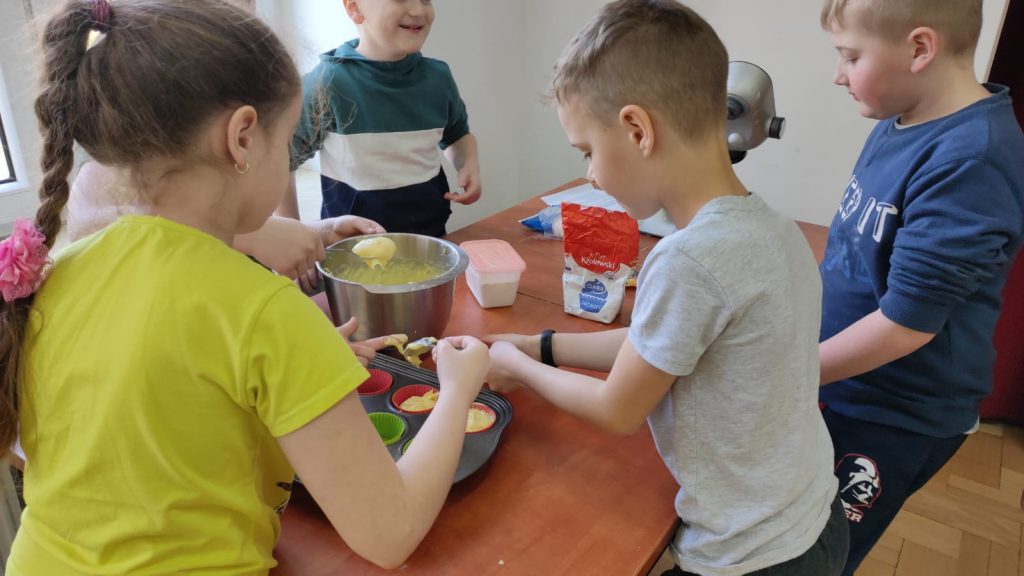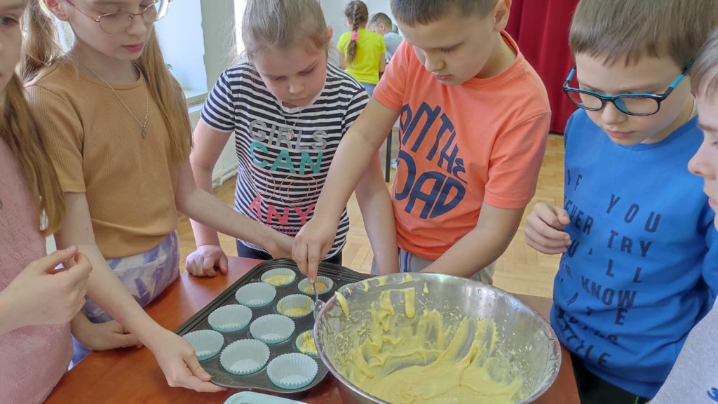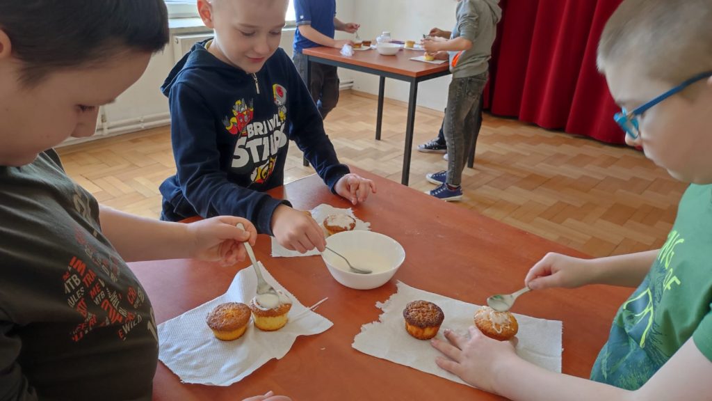 Wielkimi krokami zbliżają się święta Wielkanocne. W wielu domach rozpoczynają się przygotowania. Z tej właśnie okazji w Wielką Środę nasi uczniowie postanowili upiec babeczki wielkanocne. Dzieci podzieliły się na grupy, każda z grup dostała przepis według, którego przygotowywała ciasto na babeczki. Upieczone i wystudzone babeczki zostały pięknie udekorowane lukrem i słodkimi ozdobami.
