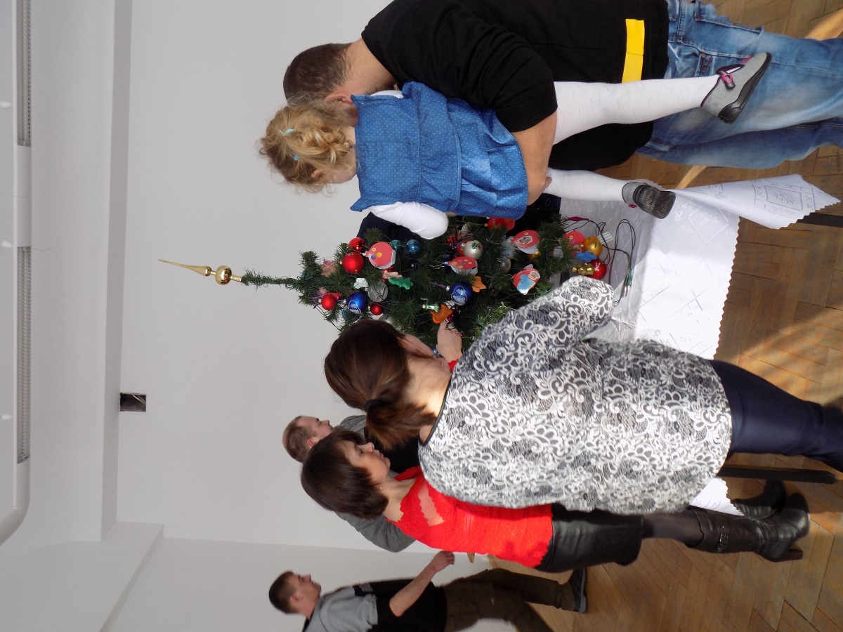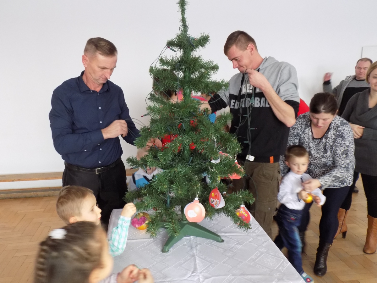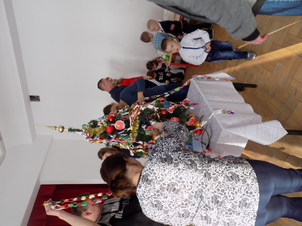 Uczestniczyli w krótkim montażu słowno-muzycznym swoich pociech, a następnie wzięli udział w warsztatach wykonywania bombki bożonarodzeniowej, wspólnie dekorowali choinkę.