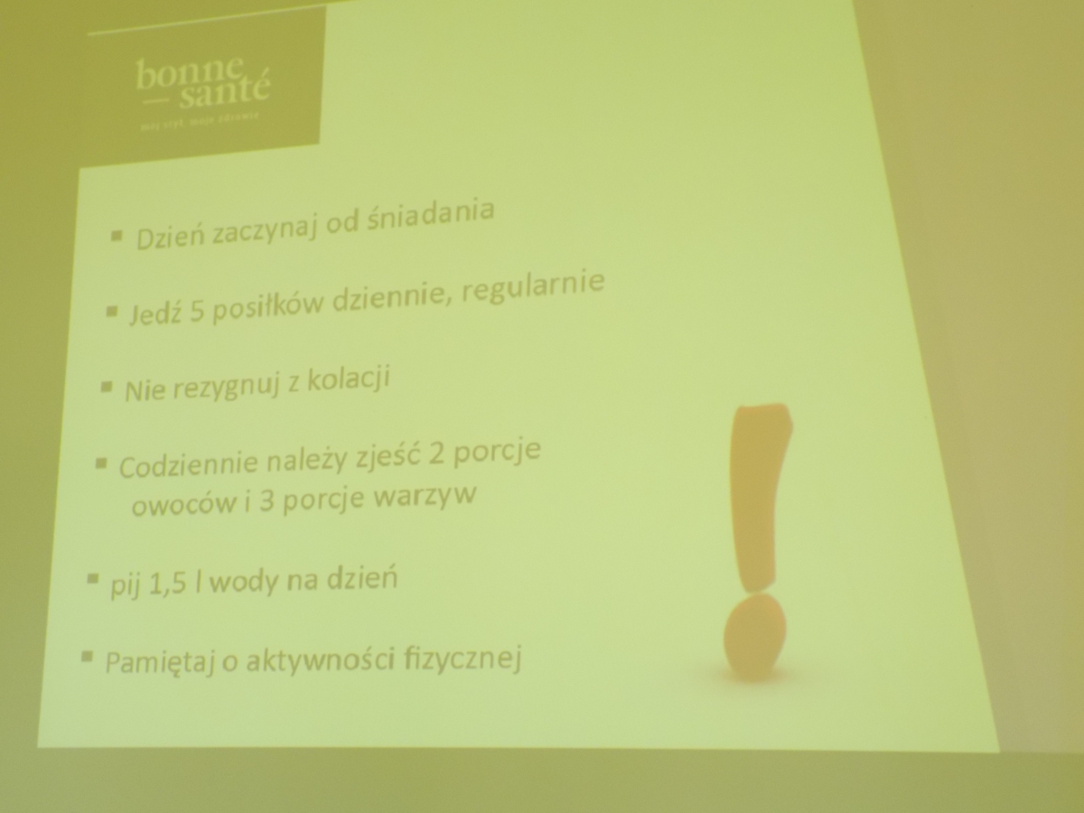 Pani dietetyk poświęciła dużo uwagi prawidłowemu komponowaniu posiłków z uwzględnieniem piramidy żywieniowej. Przypominała zasadę spożywania od czterech do pięciu posiłków dziennie, o pożywnym śniadaniu, które daje energię na aktywny poranek.