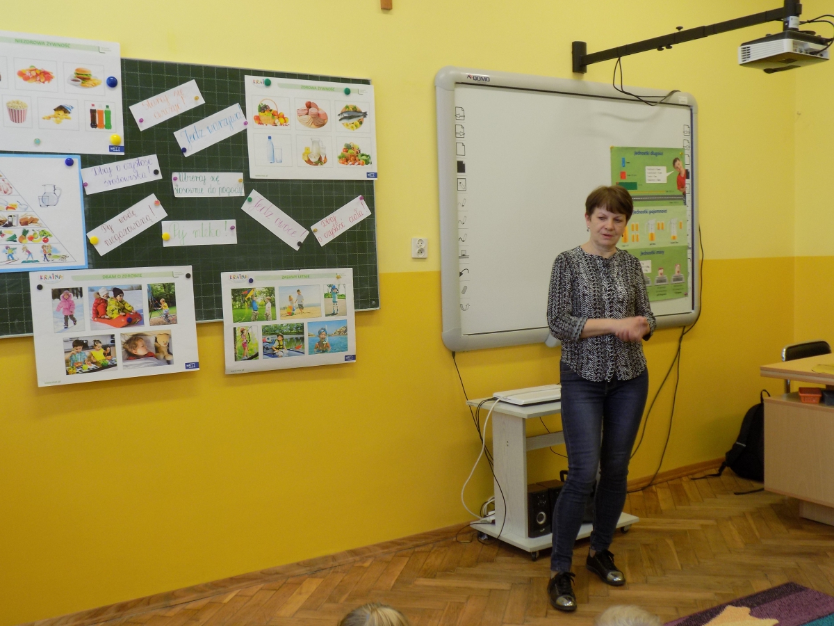 Obok uczestnictwa w programie „Nie pal przy mnie, proszę”, akcji Samorządu Uczniowskiego związanych z promowaniem zdrowego trybu życia, do szkoły regularnie zapraszamy również panią higienistkę Annę Wilk.