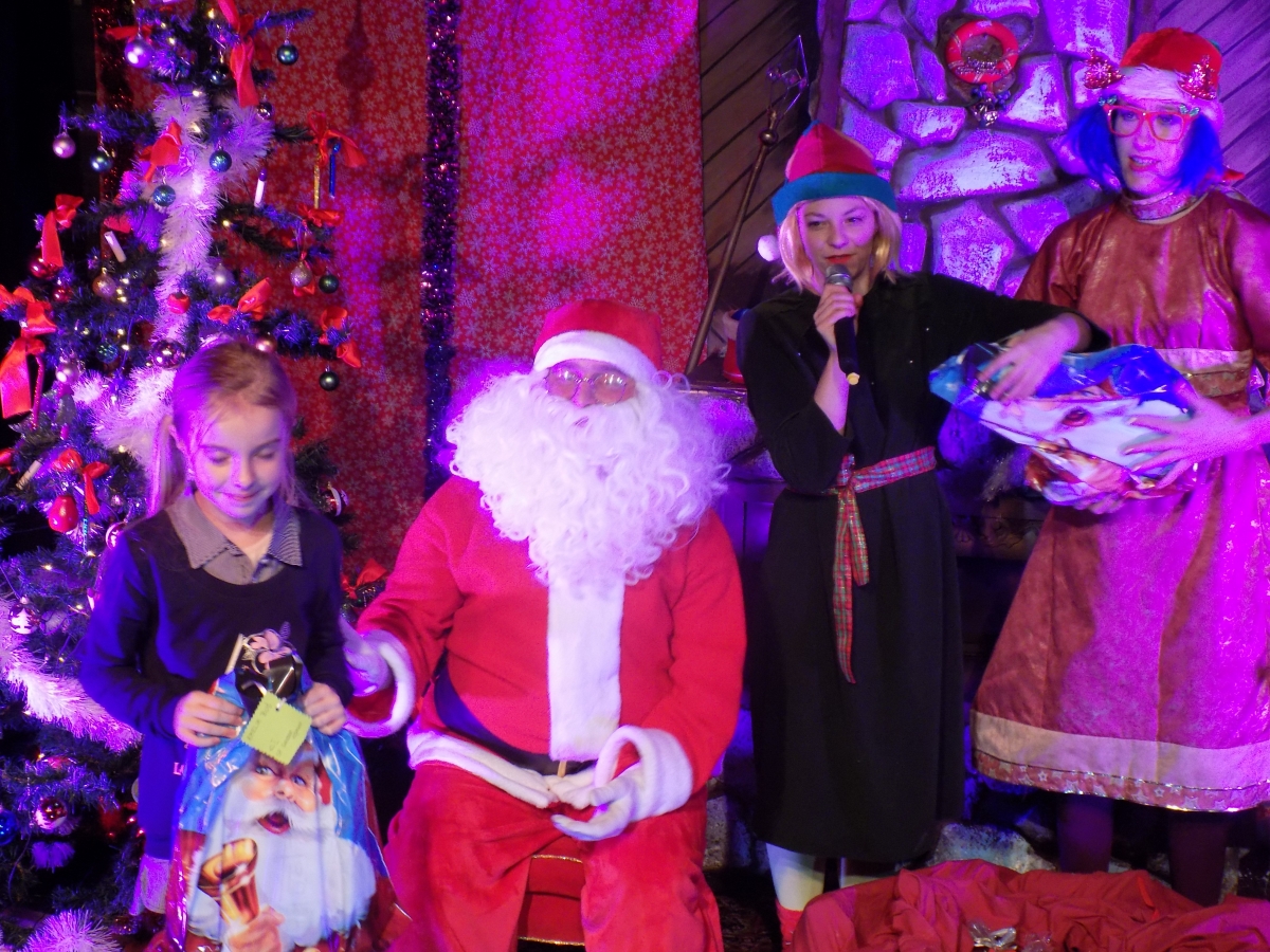 Okazało się bowiem, że podczas wizyty wszystkich uczniów w Teatrze Nowym w Nowym Sączu po spektaklu „Mikołajek szuka świętego Mikołaja”, sam poszukiwany Święty Mikołaj odnalazł się… z wielkim workiem bożonarodzeniowych prezentów.