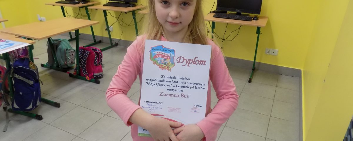 Miło nam poinformować, że Zuzanna Buś z grupy starszaków zdobyła I miejsce w Ogólnopolskim Konkursie Plastycznym „Moja Ojczyzna” zorganizowanym przez Przedszkole Publiczne Integracyjne Nr 51 w Opolu.