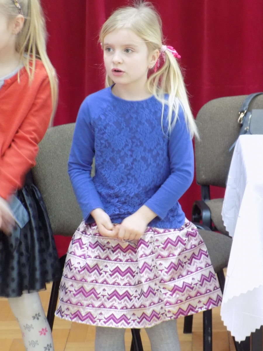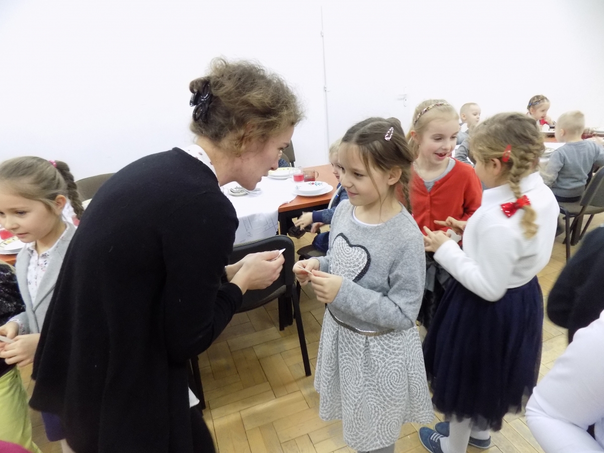 Grupa 5-6 latków przygotowała montaż słowno-muzyczny i zaprosiła do wspólnego kolędowania.