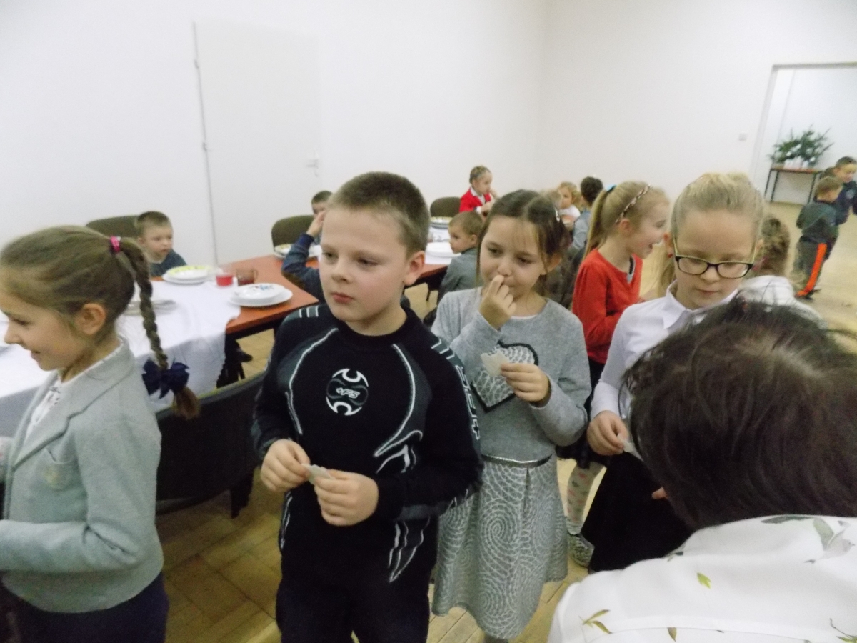 Przed wieczerzą podzieliliśmy się opłatkiem i złożyliśmy sobie życzenia.