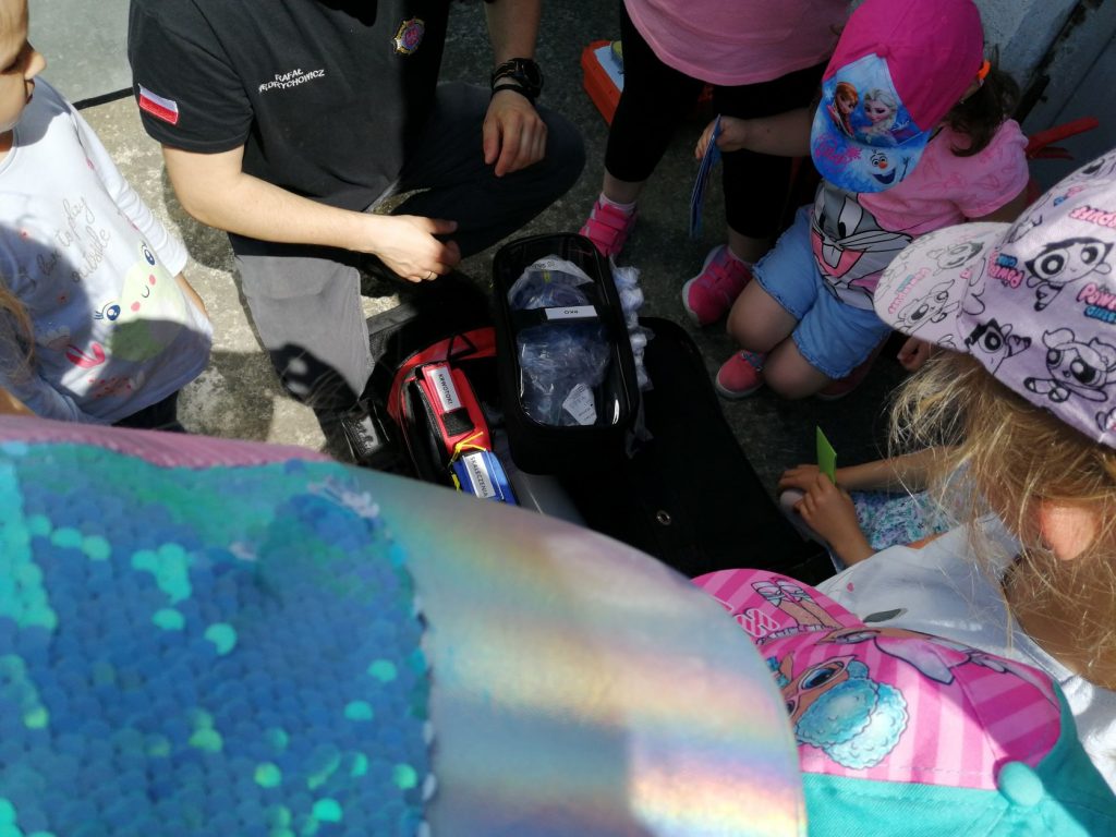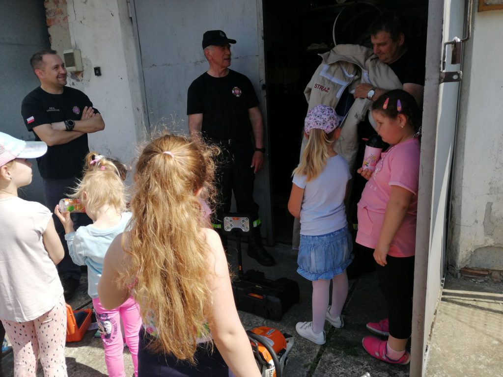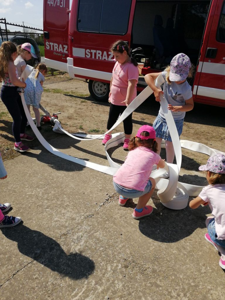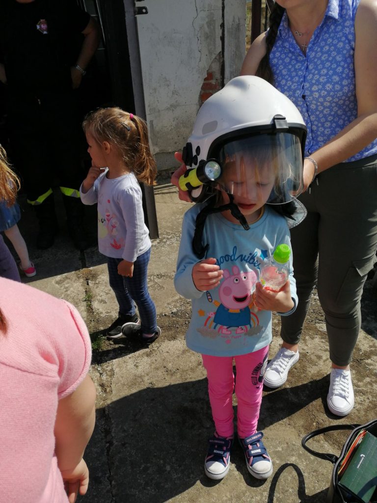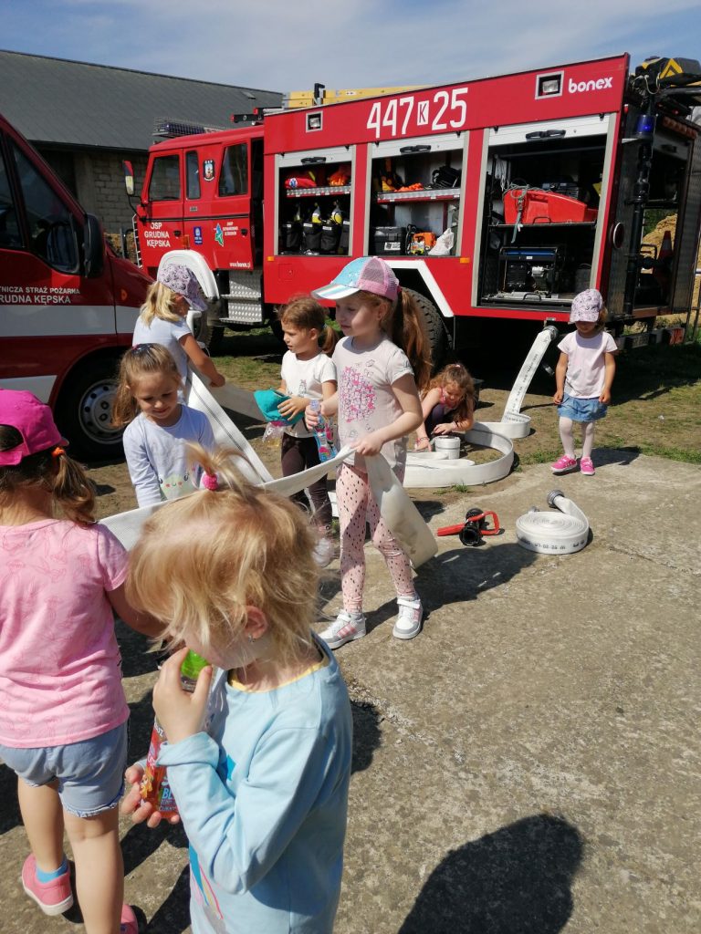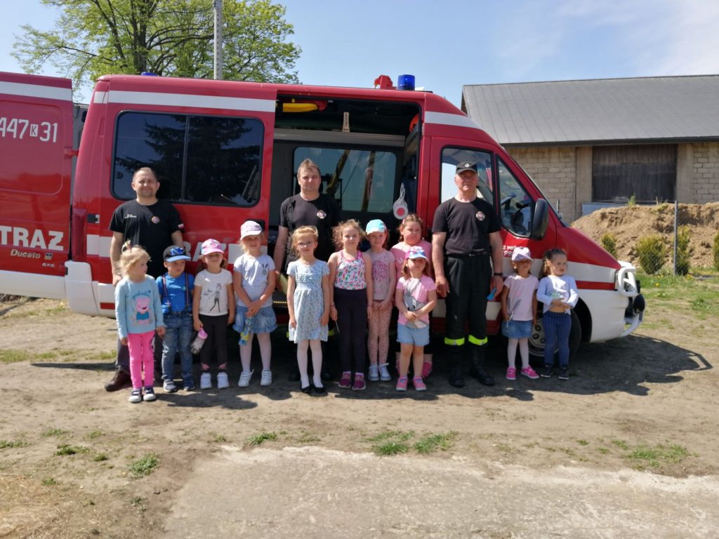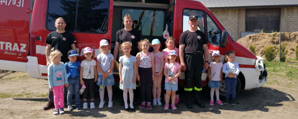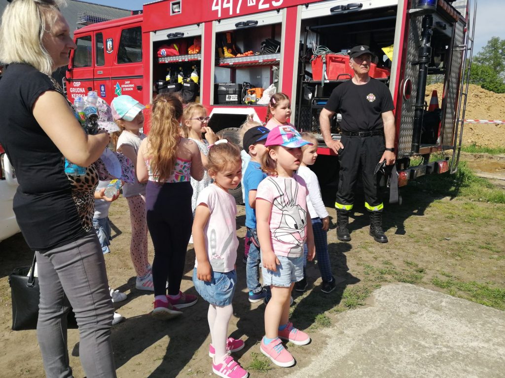 W ramach Święta Strażaków, które obchodzone jest 4 maja, nasze przedszkolaki wykonały własnoręcznie piękne laurki z życzeniami. Laurki osobiście mogły wręczyć Starażakom z OSP Grudna Kępska podczas wizyty w OSP. Panowie przygotowali dla naszych przedszkolaków pokaż samochodów, sprzętu strażackiego, pokaz pierwszej pomocy. Dzieci mogły porozmawiać sobie przez krótkofalówki, uczyły się jak rozwijać i zwijać węże strażackie, a także mogły zmierzyć stroje. Przedszkolaki dowiedziały się wielu przydatnych informacji. Na koniec zostały obdarowane słodyczami. W imieniu przedszkolaków serdecznie dziękujemy Panom Strażakom – Panu Dariuszowi, Panu Zbigniewowi, Panu Rafałowi, którzy poświęcili swój cenny czas i wygłosili pouczający wykład oraz wykonali interesujący pokaz.