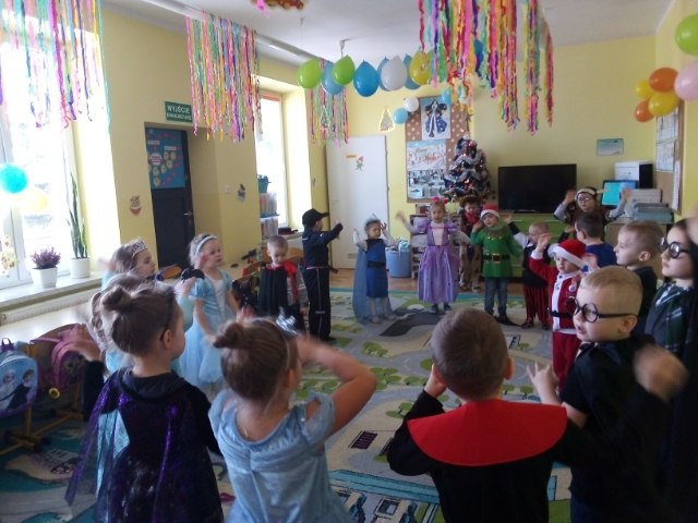 Dnia 28 stycznia 2021 roku w naszym przedszkolu odbyła się zabawa choinkowa. Tradycyjnie w tym wyjątkowym dniu każdy przedszkolak przyszedł w stroju karnawałowym. Dzieci przebrane były za bohaterów znanych bajek, wśród nich można było spotkać wróżki, księżniczki Elza, królowa pająków, jaskiniowca, elfa, mikołaja, kowboja, Batmana, policjanta, pirata oraz Harrego Pottera.