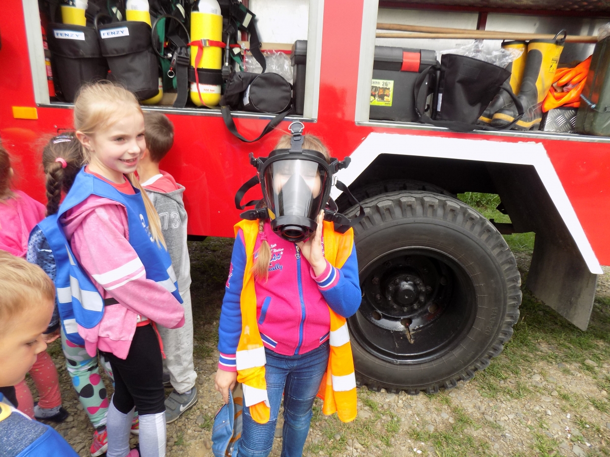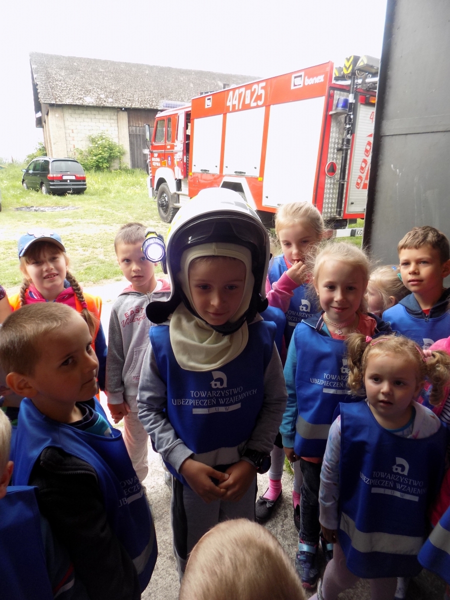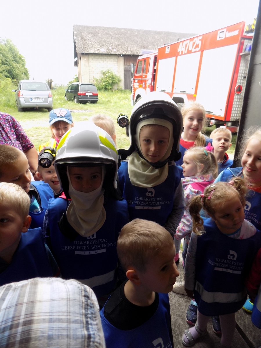 Dla dzieci spotkanie było niezwykle interesujące, ponieważ miały okazję wsiąść do samochodu strażackiego, zobaczyć sprzęt gaśniczy, a także sposób jego uruchomienia.