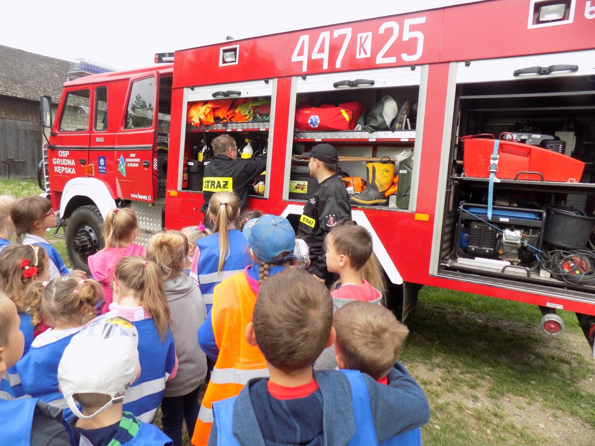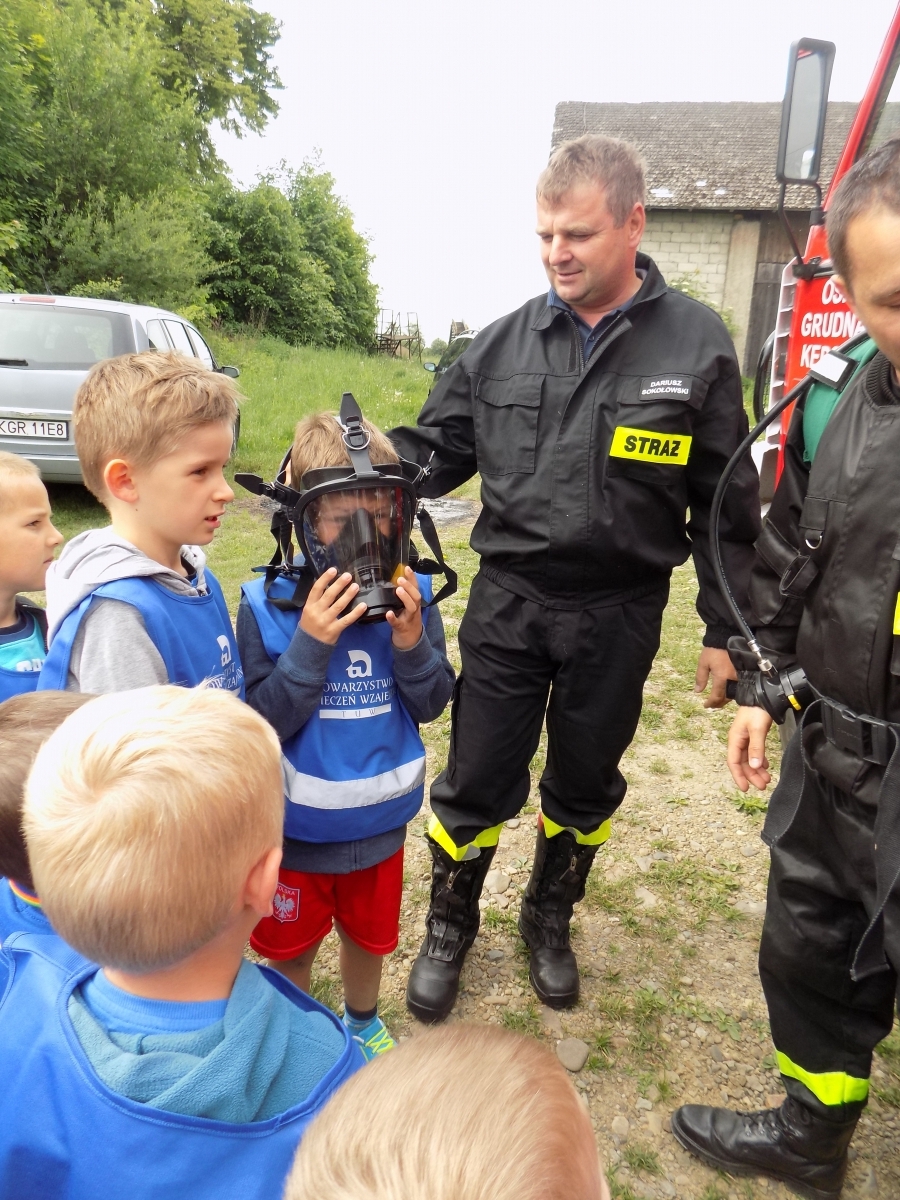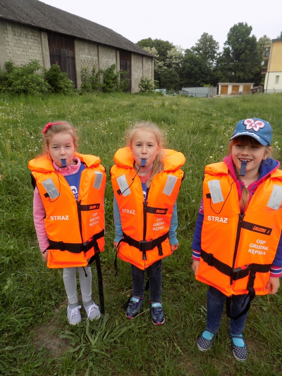 Dziękujemy Panu Dariuszowi Sokołowskiemu – Prezesowi OSP Grudna Kępska, Panu Pawłowi Frączek oraz Panu Rafałowi Wędrychowiczowi za poświęcony czas i naukę połączoną z zabawą!